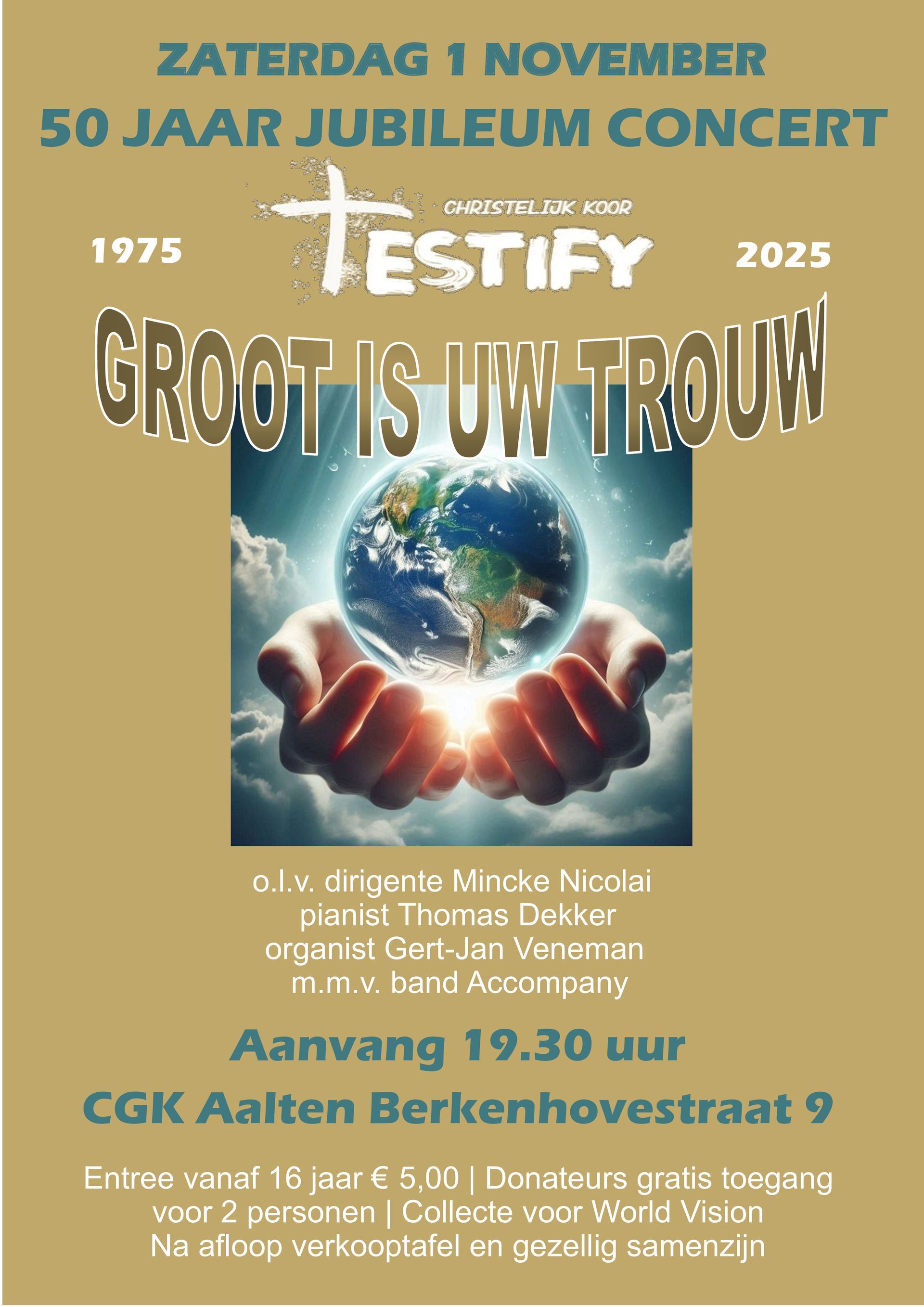 Het jubileumconcert van 1 november staat in het teken van vijftig jaar Testify en het thema van het concert is:
